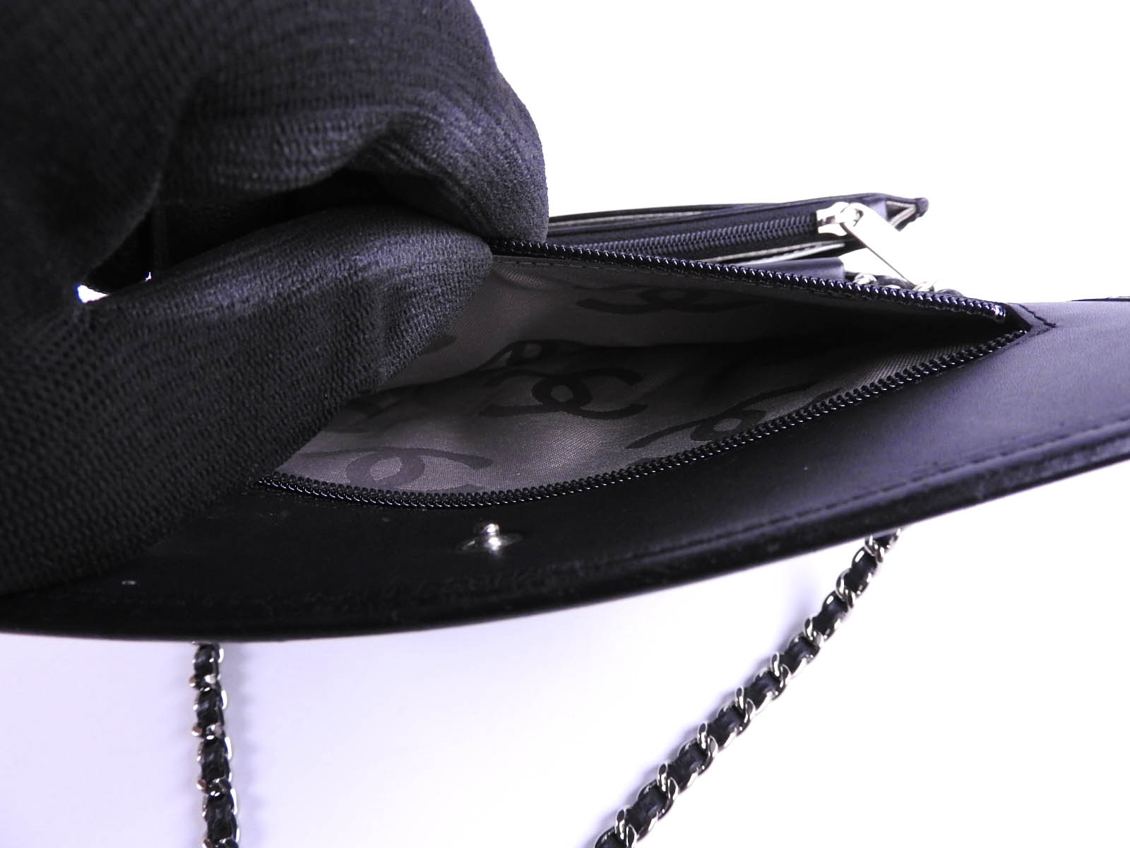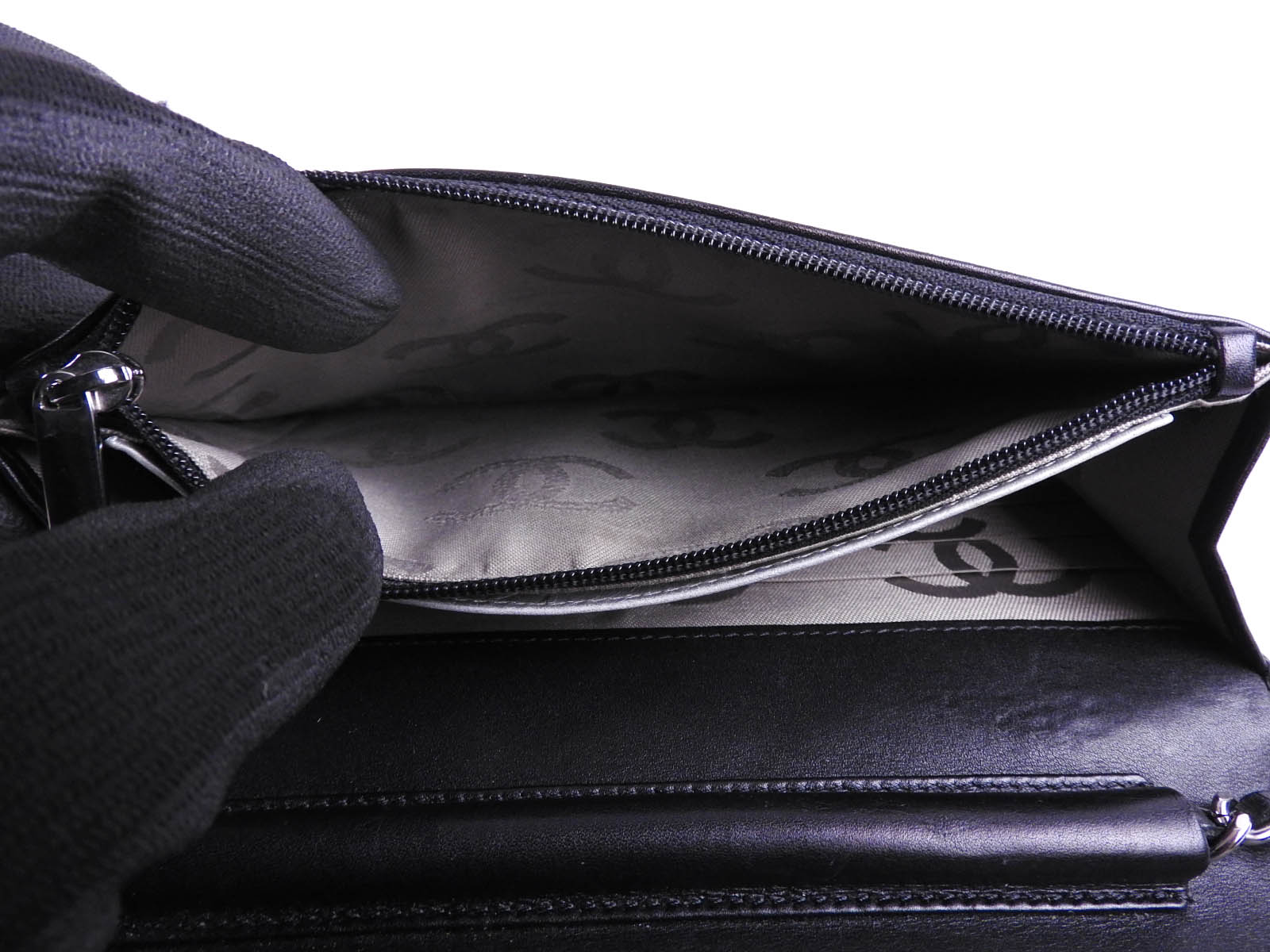 | Interior | Slightly used feeling. Small scratches. Small pressed marks in the flap by the zipper pull of the coin purse. |