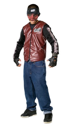 SCARY DEAD CITY CHOPPERS DOOM RIDER KLOWN COSTUMEScary Halloween Costumes(Item #CHOP03-CM)Size: Child MediumIncludesvest mask bandana gloves Halloween Costumes for Boys - Doom Rider - Be afraid. Be very afraid. This Scary Dead City Chopper costume will make even the toughest bikers shake in their chaps! Includes vest with printed sleeves, vinyl half mask with attached bandana and studded gloves. Studded wristband sold separately. 100% polyester exclusive of trim and mask. Hand wash in cool water, no bleach. Line dry.Feature
