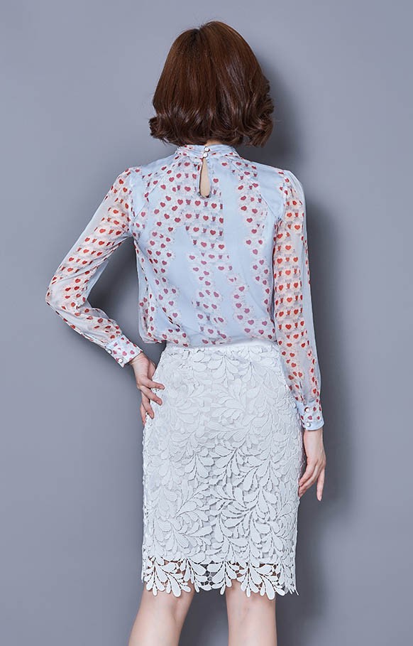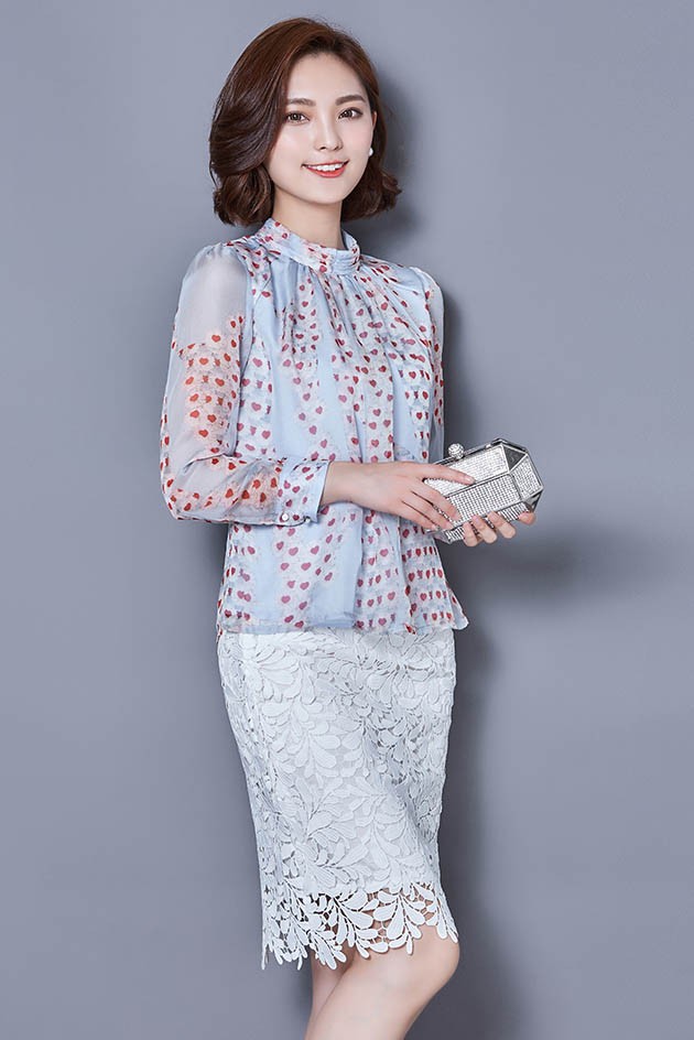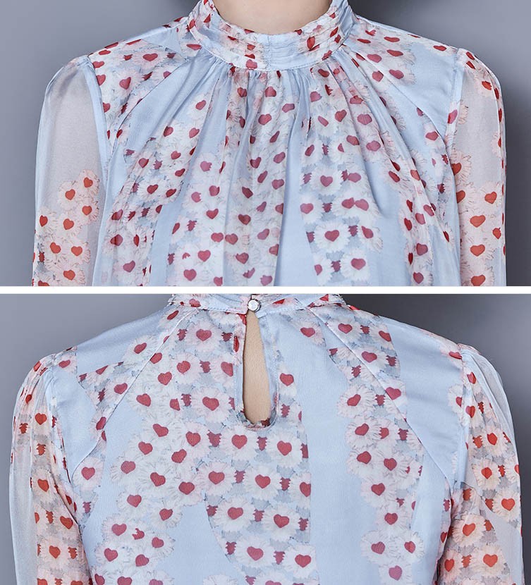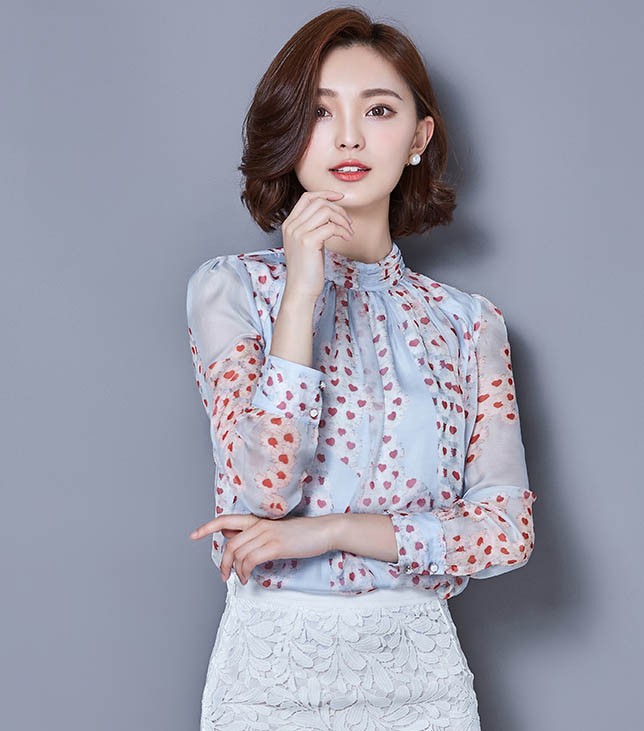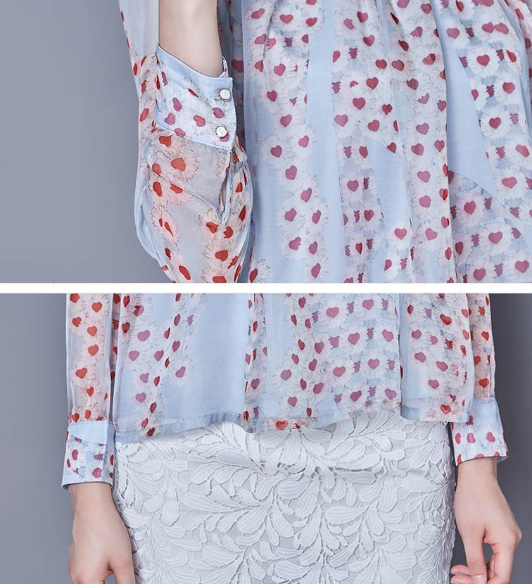 【入荷後営業日2,3日以内出荷予定 通関待ちや不良により出荷遅くなる場合はメールにてご連絡いたします。メール受信設定によっては正常に受信されない場合はございますので、 弊社からのメールを予め受信頂くようご設定くださいませ。】 トップス シャツブラウス シャツ ブラウス ハート 花柄 長袖 レディス レディース 春 新作 2018スタンドカラー花柄シフォンブラウス◆素材:ポリエステル