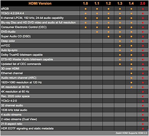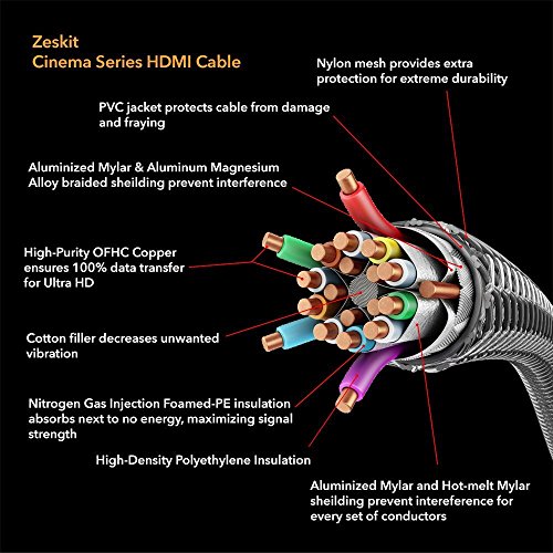 Are you ready for the HD movies, video games and also 3D content in this summer? Now Zeskit brings you Cinema Series HDMI cable, which delivers vivid color and fluid motion to help you enjoy all of these. Zeskit Cinema Series HDMI cable is compliant with the latest HDMI 2.0b specifications, supporting all 2.0 functions including 4K@50/60Hz, 3D, ARC, HDR (High Dynamic Range). Made of high quality components and by world-class factory, this 1-meter cable only charge at a reasonable price. If your devices do not support 4K, don't worry. Cinema Series HDMI cable is backward compatible with all earlier versions of HDMI specifications and maximizes performance of your current setting, including Full HD 1080p. Connector: Full Size HDMI Male to Full Size HDMI Male Cable length: 1 meter (3 feet) HDMI Version: 2.0b Features: ? 18Gbs bandwidth ? 4K / Ultra HD, up to 4096 x 2160p @60Hz ? HDR (High Dynamic Range) ? ARC (Audio Return Channel) ? 3D over HDMI ? Backward compatible with 1080p and earlier HDMI versions 0 |