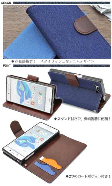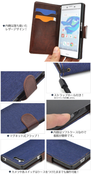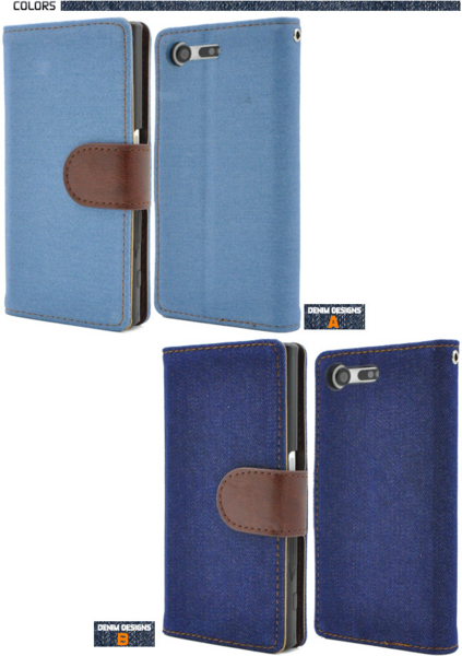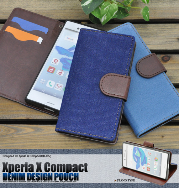 デニムデザインのXperia X Compact用スタンドケースポーチ。