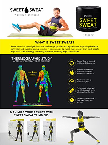Sweet Sweat Skin Cream accelerates and enhances heat production, helps balance problem areas during your workout. Increasing heat production to "Slow to Respond", insulating fatty tissue areas. Creates a "Portable Sauna - Like" Environment, accelerates Warm - up and recovery time, making your workout feel easier. Assists in preventing muscle injury.Feature
