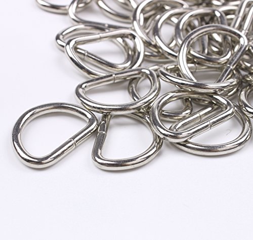 BIHRTC Pack of 100 Non Welded Nickel Plated 3/4 inch Metal D Ring Buckles for Webbing Hand Bags Leather Craft