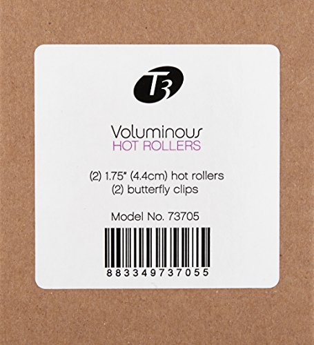 The 1.75” diameter T3 Voluminous Hot Rollers create voluminous soft waves for longer hair types and body and volume with no curl for shorter hair lengths. Also includes 2 spring-loaded butterfly clips to hold rollers securely in place during styling. T3 has reinvented hot roller technology to create contemporary looks with voluptuous waves or curls and incredible shine. With advanced technology in each roller, every strand of hair will have volume, shape, movement, and shine. The Voluminous Hot Rollers have been designed with proprietary Tourmaline technology and a ceramic core, which emits maximum ionic, infrared heat to safely penetrate the hair shaft, effectively styling the hair while sealing the hair cuticle against frizz. The velvet flocking along the roller surface enhances the effects of Tourmaline, imparting natural shine to hair during the styling process.