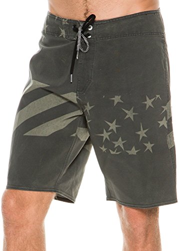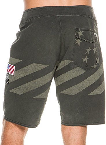 Studio : Volcom Young Men's Publisher : Volcom Young Men's Binding : Apparel Product Description A 20 inch out seam board short made with Volcom 's premium recycled blend 4-way stretch fabric. The merry kah short features a DWR treatment to help keep the fabric lightweight and quick drying, easy entry cinch fly technology and a back flap pocket. Stars and stripes print and patches at left leg. 0