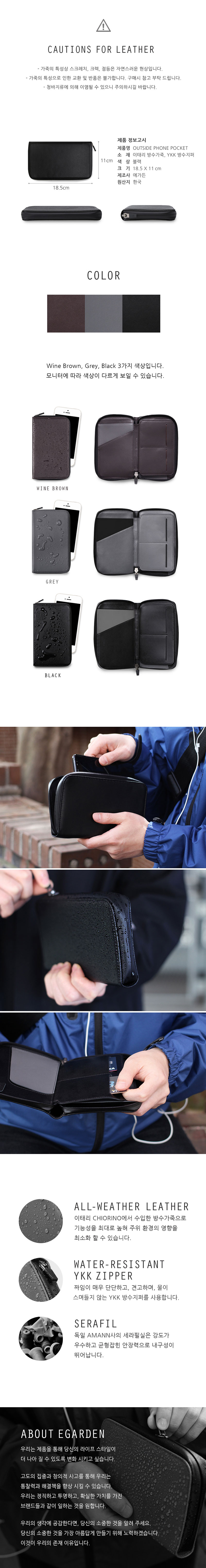 방수지퍼와 방수가죽으로 어떠한 상황에서도 보호되는 지갑.