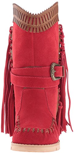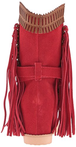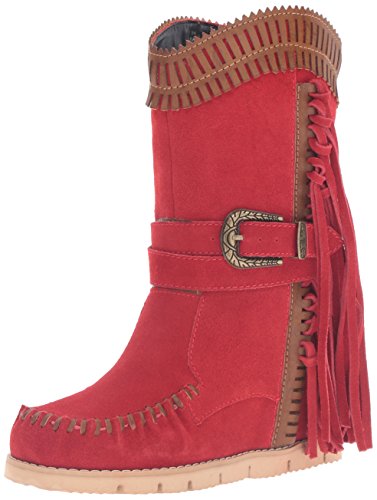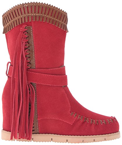 Product DescriptionMid shaft suede fringe wedge boot with buckle detail and contrast cuff0
