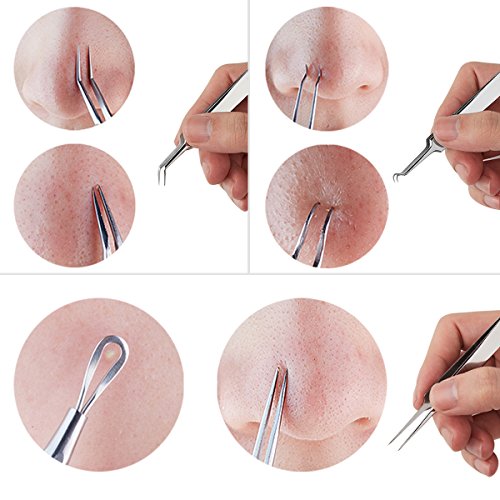 - Perfect kit - Two Blackhead remover needles & three blackhead extractor tweezers. you can use it to deal with acne breakouts, blackheads, whiteheads, enlarged pores,etc.