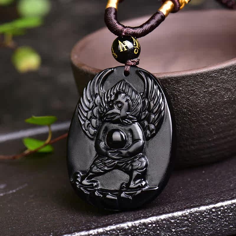 开光生肖属蛇开运转运吉祥物 金翅献珠黑曜石吊坠