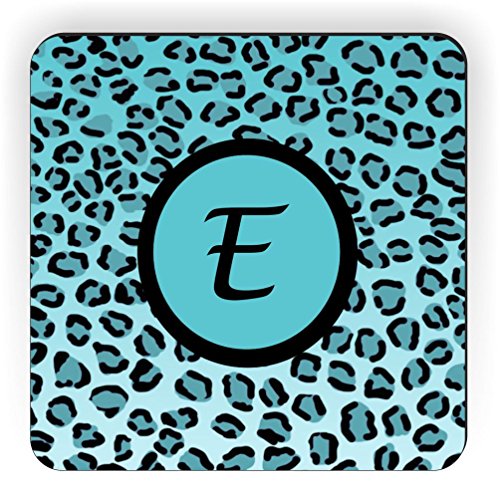 Rikki Knight Letter "E" Initial Sky Blue Leopard Print Monogrammed Design Square Fridge Magnet