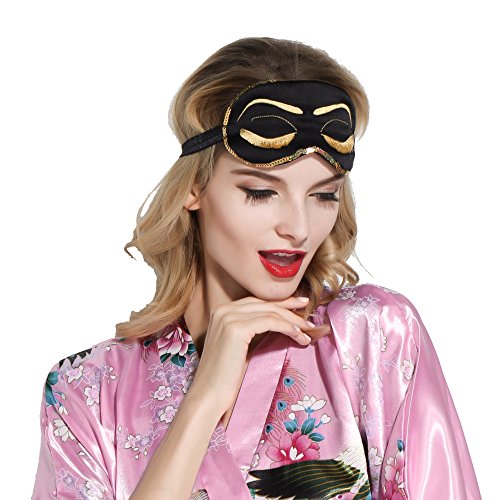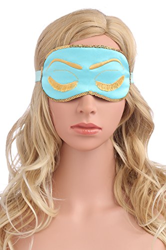 Handmade eye mask is decorated with fringed eyelash and sequins edge. It is embroidered with gold thread on soft satin, which will help you to have a sleeping beauty look even during sleep.