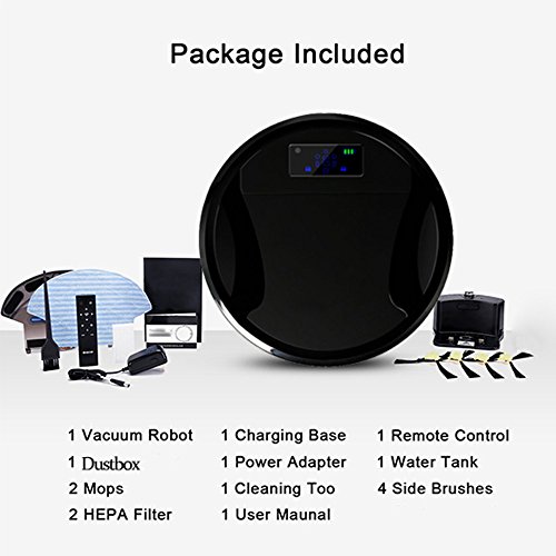 -. Title : Aidbot Black Smart Robotic Vacuum Cleaner Auto Robot Vacuum Deep Cleaning Strong Suction Self Charging Ultra-thin Timing Low Noise Sweep Mop Vacuum Robot with Water for Pet Hair Carpet Floor