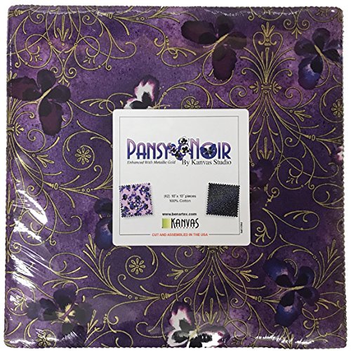Pansy Noir~ 10" Cotton Squares - Benartex