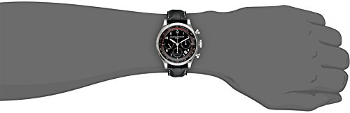 -. Feature : Black dial with silver-toned hands and arabic numeral hour markers / Stainless steel case with a black alligator leather strap / Mechanical-hand-wind movement / Case diameter: 42mm / Water resistant to 165 feet