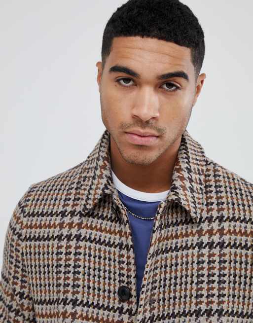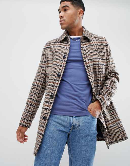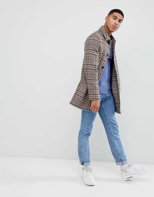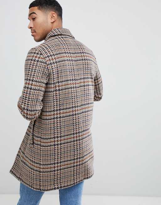 ASOS DESIGN wool mix overcoat in brown check