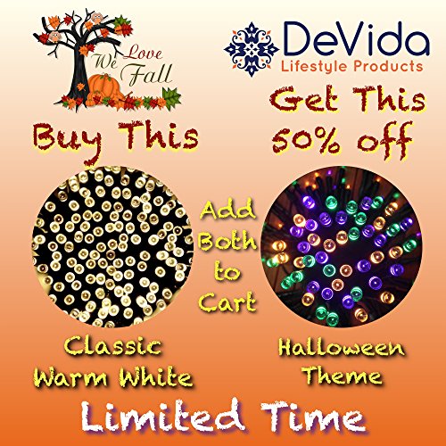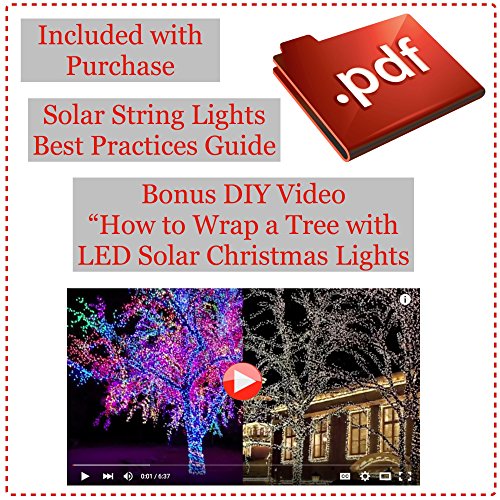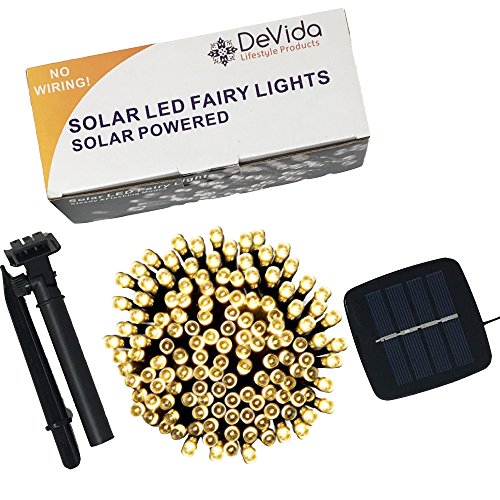 DeVida Solar String Lights 120 Warm White LED, Easy to Install, Automatically Turns on at Night, Outdoor Waterproof, 55 ft set Includes 13 ft Lead Wire Plus 42 ft Lighted Strands for Tree Wrap