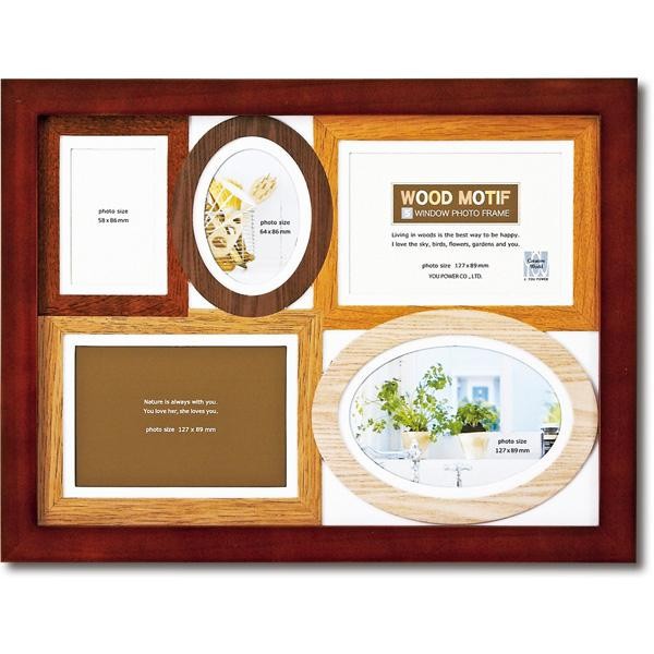 | 仕様 | ●壁掛・卓上両用(縦横両用) ●1mmホワイトペーパーマット・2mmウッドモチーフペーパーマット付 ●フォトサイズ:ミニサイズ2枚(58×86mm、64×86mm各1枚)、サービスサイズ(127×89mm)3枚 |