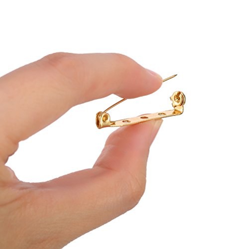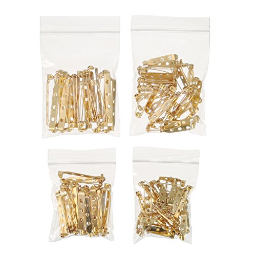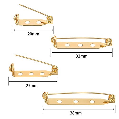 Shappy 100 Pieces Bar Pins Brooch Pin Backs Safety Clasp with Plastic Box, 4 Sizes 20 mm, 25 mm, 32 mm and 38 mm (Gold)