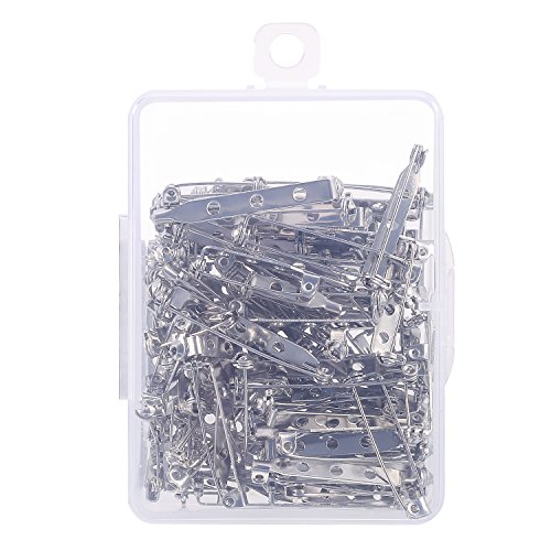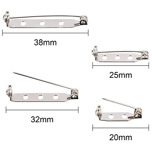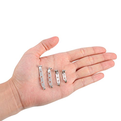 Shappy 100 Pieces Bar Pins Brooch Pin Backs Safety Clasp with Plastic Box, 4 Sizes 20 mm, 25 mm, 32 mm and 38 mm (Silver)