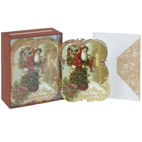 Punch Studio Christmas Dimensional Greeting Cards: Old St. Nick with Gold Foil Embellishment, Set of 12
