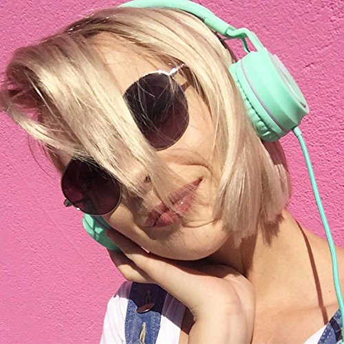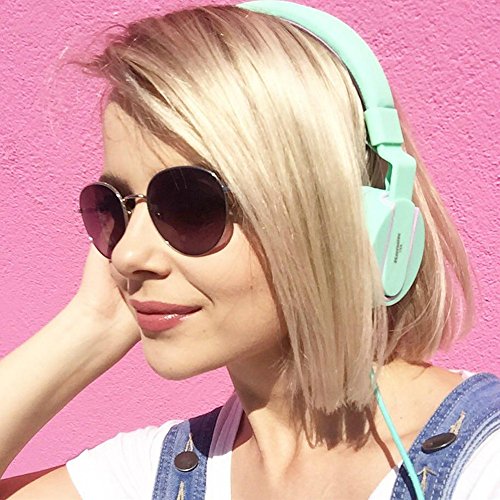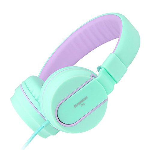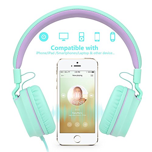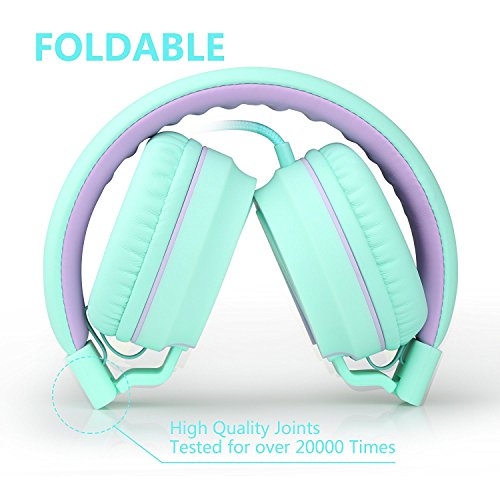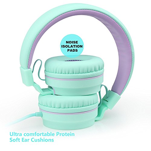 Ailihen I35 Headphones with Microphone Stereo Lightweight Adjustable Foldable Headset for Cellphones Smartphones iPhone iPod Laptop Computer Mp3/4 (Green Purple)