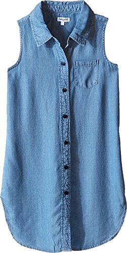 Binding : Apparel Product Description A super cool tunic for the trendiest of girls. Lightweight chambray tunic features a gorgeous light blue hue. Foldover collar. Sleeveless design. Tunic silhouette. Left chest pocket. Full button-up closure. Inverted pleat at back yoke. Shirttail hemline. 100% Tencel. Machine wash cold, tumble dry low. Imported. 0