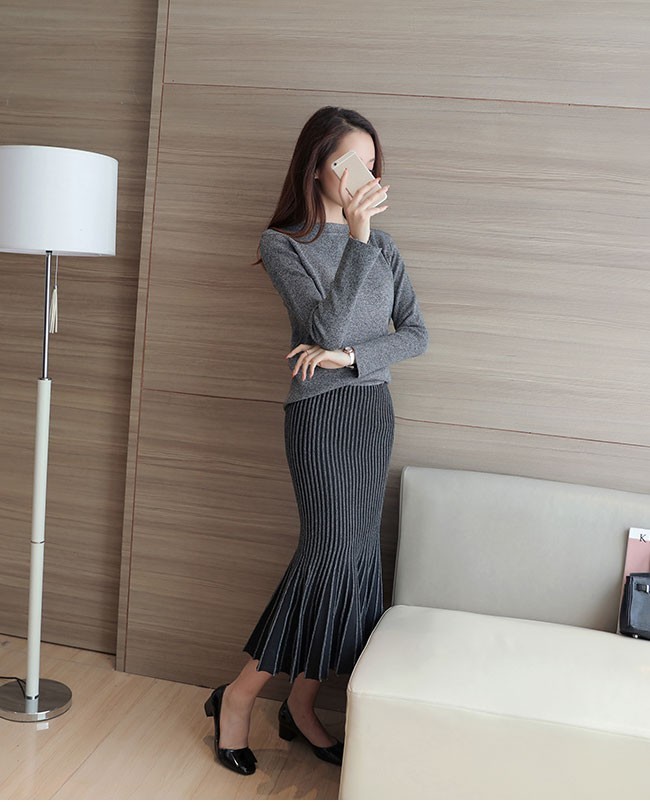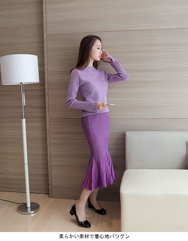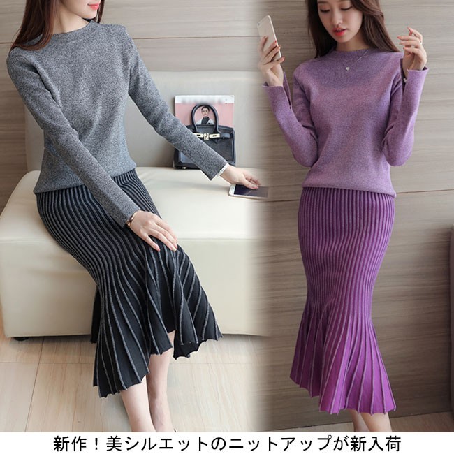 新作!美シルエットのニットアップが新入荷!人魚のような裾デザインが優雅さを演出してくれる!柔らかい素材で着心地バツグン!お洒落それぞれ単品でも気回しの効くアイテム!通勤スタイルから二次会などいろいろ場合に対応!カラー パープル グレー素材:コットン ポリエステル ポリウレタンサイズ(cm):S M L XLS参考体重40-45KGM参考体重45-50KGL参考体重50-55KGXL参考体重55-60KGレディースニットセットアップ レディース2点セット 上下セット フリル クルーネック スカート カジュアル セーター 上品 オシャレ マーメイド 女らしい モノトーン 優雅 ニットアップ 秋冬