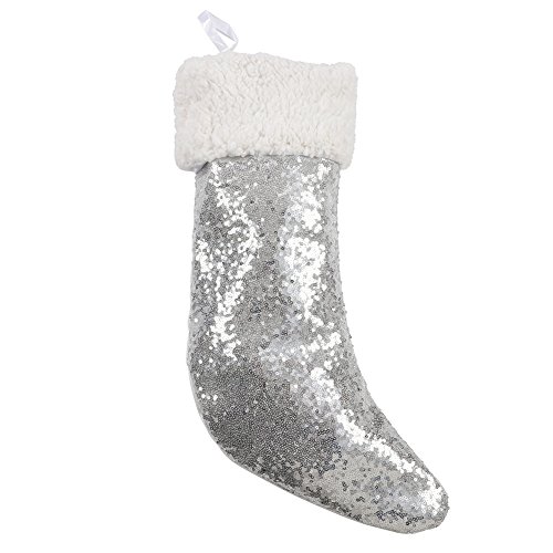 Fennco Styles Charming Sequin and Sherpa Border Christmas Tree Skirt (10"x18" Stocking, Silver)