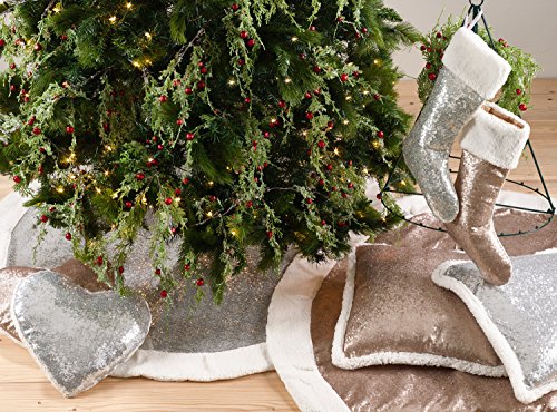 - Fennco Styles Charming Sequin and Sherpa Border Christmas Tree Skirt will look great under your tree this holiday season