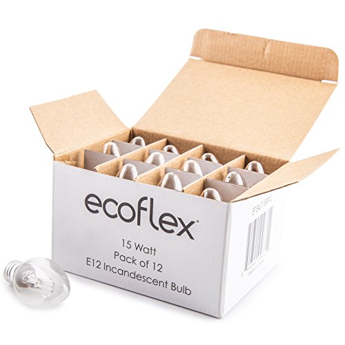 ECOFLEX Long Lasting 15 Watt E12 Socket Incandescent Candelabra Salt Lamp Bulb - Pack of 12