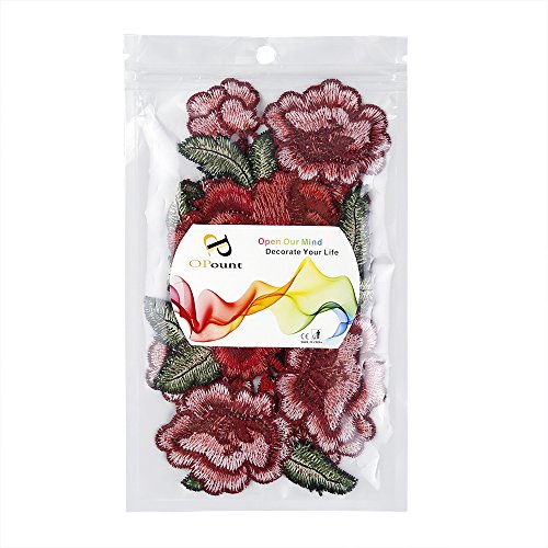 OPount 2 Pieces Embroidery Lace Flower Applique Sew On Patch 5 Roses on a Branch For Craft, Sewing, Clothing, Scrapbooking Decoration