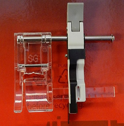 -. Feature : The Sliding Guide Foot makes edge stitching so easy! You can adjust the guide to sit up to a full inch away from the edge of the foot in seconds and create perfectly straight hems every time. It's also great for lining up rows for decorative stitching and quilting. / Great for quilting. Evenly sew decorative stitches. Create beautiful top stitching of various widths. / Use with: MC15000, MC12000, MC9900, MC8900, MC8200, Skyline S7, Skyline S5