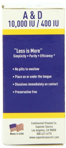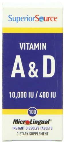 -. Binding : Health and Beauty -. Brand : Superior Source -. EAN : 0076635905706 -. Feature : Vitamin a also plays a vital role in the promotion of immune system health / Vitamin d works in conjunction with calcium to promote the development and maintenance of strong bones and teeth / Our vitamin d products are d3, the finest source of vitamin d available -. IsAdultProduct : 0 -. Label : Superior Source -. Manufacturer : Superior Source -. MPN : B003AWOC7M -. NumberOfItems : 1 -. PackageQuantity : 1 -. PartNumber : B003AWOC7M -. ProductGroup : Health and Beauty -. ProductTypeName : HEALTH_PERSONAL_CARE -. PublicationDate : 2013-03-30 -. Publisher : Superior Source -. ReleaseDate : 2015-06-22 -. Size : 100 -. Studio : Superior Source -. Title : Superior Source Vitamin A 10,000 IU and Vitamin D 400 IU Dietary Supplement, 100 Count -. UPC : 076635905706