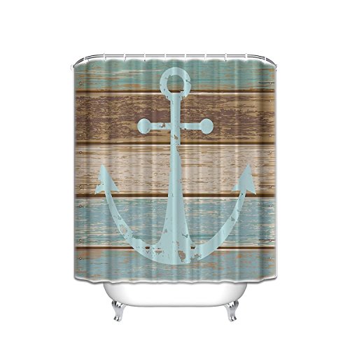 Nautical Anchor Rustic Wood - Shower Curtain Custom Made,Waterproof Mildew Resistant Machine Washable,Rings Set Included,48 x 78inch