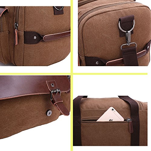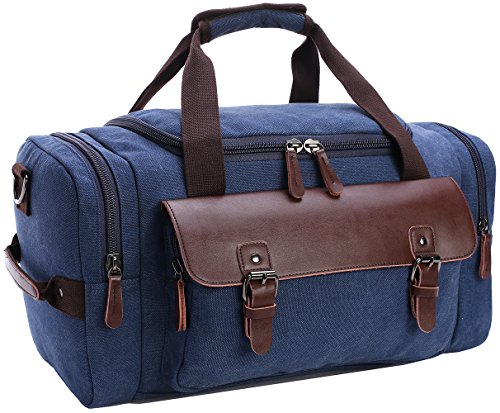 -. Brand : IRuby -. ClothingSize : One Size -. Department : mens -. Feature : Material: 16Ann cotton canvas and PU leather decoration / It provide the adjustable padded shoulder straps, you can adjust it according to your needs. / Spacious duffel bags with zippered clamshell opening and dual zippered side compartments / Multi-functional bag, can be used as a tote or a shoulder bag. / Approx Dimensions: 18.2" L x 9" W x 9.7" H -. Model : 8830DJ -. ProductGroup : Apparel -. ProductTypeName : LAGE -. Size : One Size -. Title : IRuby Leather Trim Canvas Travel Duffel Bag Gym Bag Overnight