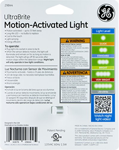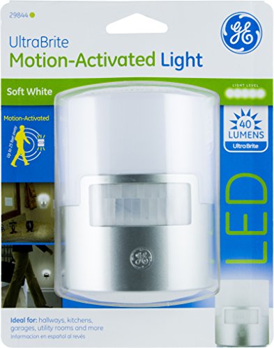 GE Ultra Brite Motion-Activated LED Light, 40 Lumens, Soft White, Night Light, Energy Efficient, Ideal for Hallway, Stairs, Kitchen, Garage, Utility Room, Laundry Room, Silver, 29844