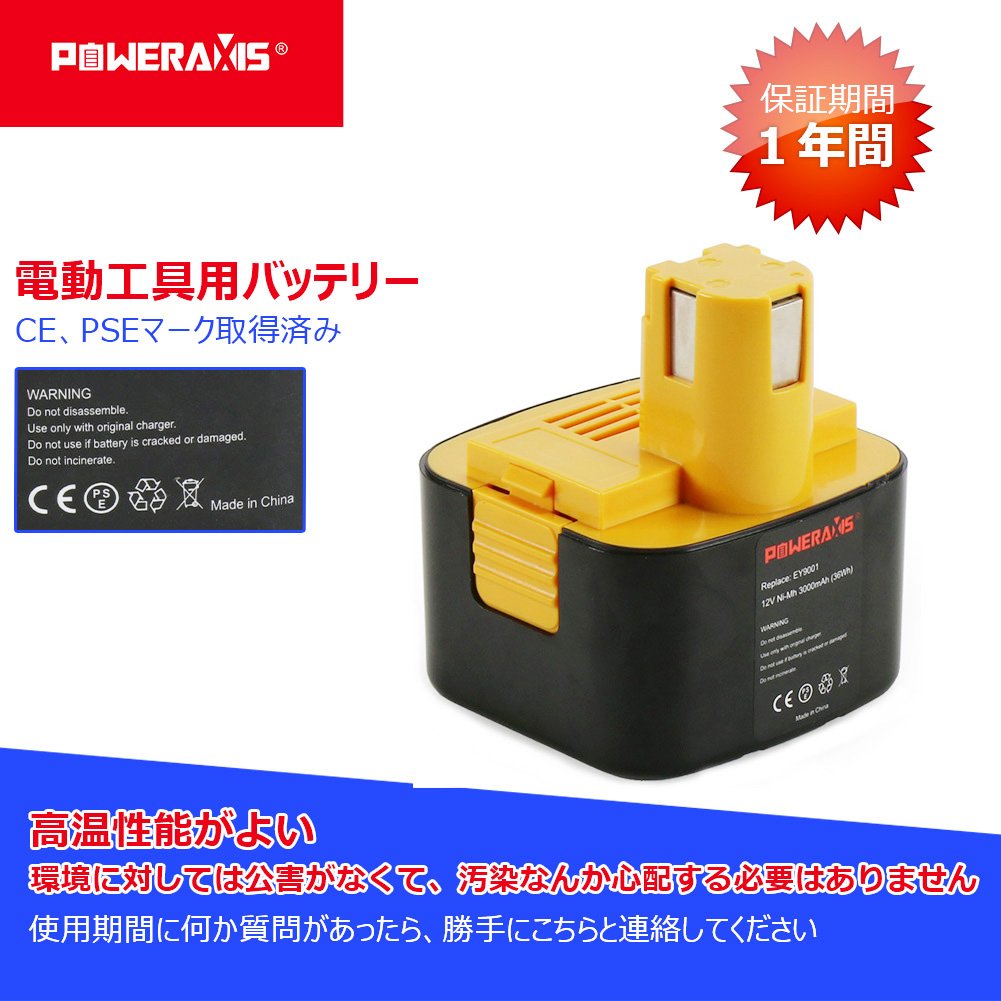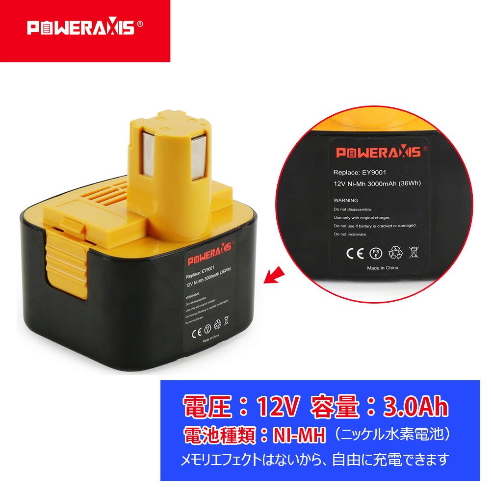 【POWERAXIS】 Panasonic EZ9200 EZT901 EY9200 compatible battery 12V battery 3000mAh nickel hydride battery