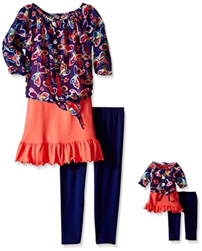 Dollie & Me butterfly chiffon layered tunic with knit legging and matching doll outfit