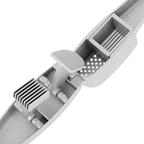 - VERSATILE – Press peeled garlic cloves for different needs, Two pressing sections, Holes for crushing nubs, Blades for making slices