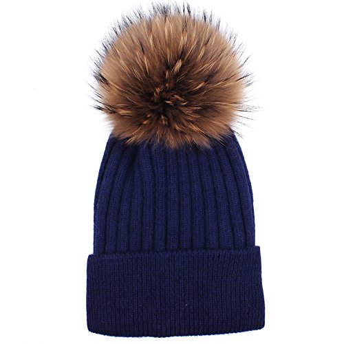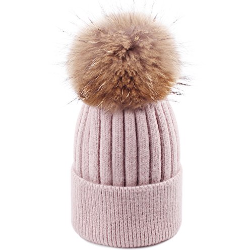 | Womens Winter Pom Pom Hat - Super Soft Angora Wool Knit Beanie Fur Ball Hats For Women Girls FU... |