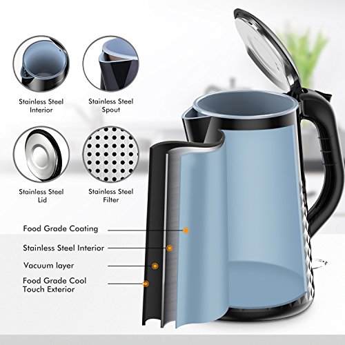 Anti-scald, easy to clean: Designed with non-stick coating, a sleek stainless steel, heat-insulated interior, and cool touch exterior, scalding and unhygienic mineral deposits in the kettle are a thing of the past