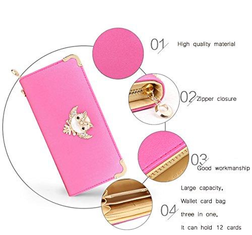 -. Feature : PU leather and synthetic / Size: Length 8.26" x Width 4.13''x Height 1.18" (21 cm x 10.5 cm x 3 cm) / Plenty of Room To Hold Paper Money, Credit Cards, Coins, Checkbook, Phone, Ticket, License, Receipts, Coupon, Smartphone, Insurance Cards, Debit Cards etc. / Fashion design with the cute owl / Guaranteed Satisfaction,otherwise refunds