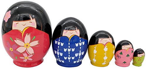 Studio : Pivizon Publisher : Pivizon Binding : Toy Product Description "Matryoshka" are Russian wooden dolls with smaller dolls stacked within the bigger ones. -Exquisitely painted with wonderful detail on all the dolls. -They are light for their size and the pieces fit easily, yet snuggly together. -They are easy to take apart too so there will be no pinching of little fingers. -It is the perfect set for your little kids or granddaughter which she will treasure these for a lifetime. Nesting Dolls as Gifts Russian nesting dolls make wonderful gifts, and are traditionally given on many kinds of special occasions. For example, they make: -Beautiful wedding decorations - Housewarming gifts - Children's toys - Mother's Day and new baby gifts - Collectibles Size: The largest one is 3.9 inches/10cm tall and 3 inches/7.6cm diameter at the base. The smallest one is 1.1 inch/2.7cm tall and 0.5 inch/1.3cm diameter at the base. Package Included: 1 * Set of 5 Russian Nesting Dolls (Handmade) Note: Wooden items,Please keep the dolls in dry conditions CHOKING HAZARD! Not recommended for kids under 3 due to possible small parts. 0