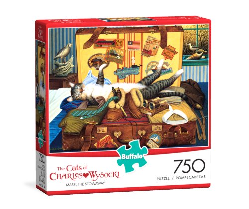 -. Binding : Office Product -. Brand : Buffalo Games -. Feature : Contains 750 pieces / Finished size is 24 x 18 Inch / Manufactured from premium quality materials / Made in the United States / Bonus poster included for help in solving -. IsAdultProduct : 0 -. Label : Buffalo Games -. Manufacturer : Buffalo Games -. PackageQuantity : 1 -. ProductGroup : Art and Craft Supply -. ProductTypeName : ART_SUPPLIES -. Publisher : Buffalo Games -. Studio : Buffalo Games -. Title : Buffalo Games Charles Wysocki Cats, Mabel The Stowaway - 750pc Jigsaw Puzzle