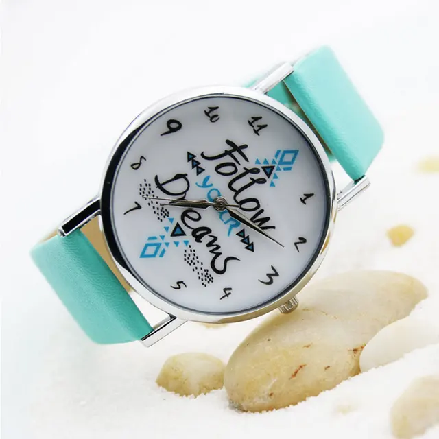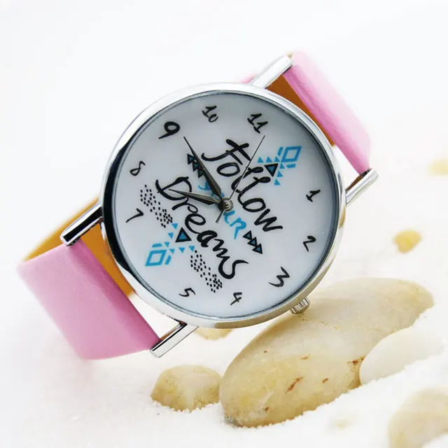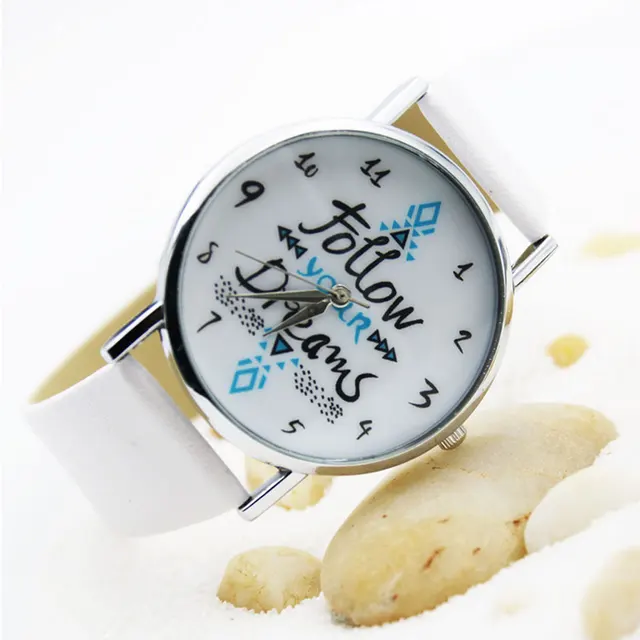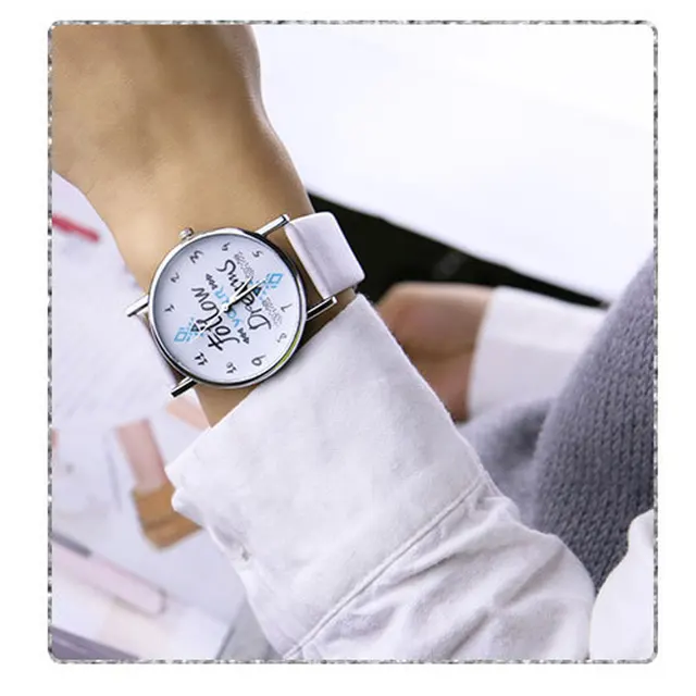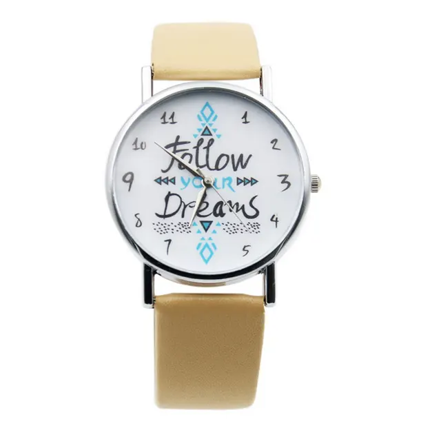| [해외] 섬세한 시계 여성 시계 여성 다음과 최신 여자 팔찌 시계 여성 드림 단어 패턴 가죽 시계 Relogio Feminino |