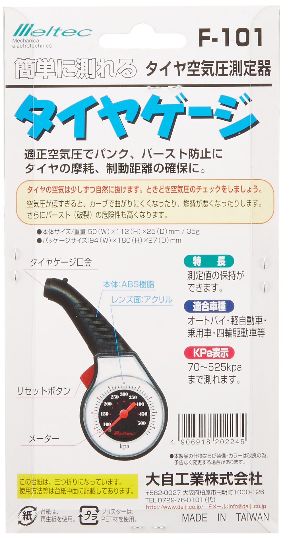 Meltec (Meltec) air pressure measuring instrument tire gauge F-101