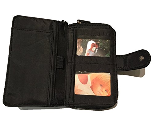 BEAUTIFUL AND FUNCTIONAL DESIGNED - This clutch has 9 oversized card slots, 3 ID or picture windows, 5 larger pockets, 1 zippered pocket with two accordion pockets, pen holder, a zipper pocket for change and coins and a snap button closure