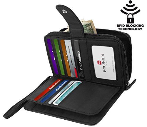 MUNDI AMAZING ALL-IN-ONE WOMENS RFID BLOCKING: This wallet clutch is the ideal wallet to keep you organized and looking stylish. This is a newer style to your favorite MUNDI File Master Womens Wallet Clutch with the same great features of RFID Blocking technology.