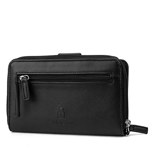 RFID BLOCKING TECHNOLOGY: Every Mundi RFID blocking clutch wallet is manufactured with RFID blocking technology. Now you don't need to worry about thief's steeling your credit cards, debit cards or driver's license information. Wireless identity theft, also known as contactless identity theft or RFID identity theft is a growing concern as more cards are enabled with RF-enabled technology. Be sure you are protected from these criminals and thieves with our RFID wallets for women. Our RFID Blocking wallet with checkbook storage will secure your Identity and personal information from RFID scanning devices, skimming devices and electric pickpockets.