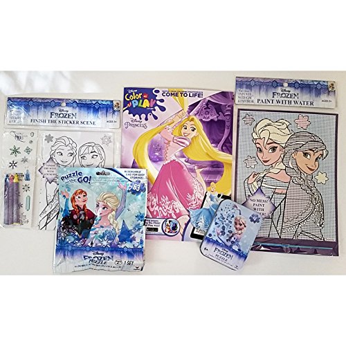 Product DescriptionContains: 1 48 piece puzzle tin, 1 63 piece puzzle on the go, 1 paint with water set, 1 finish the sticker scene set, 1 color and play coloring book0
